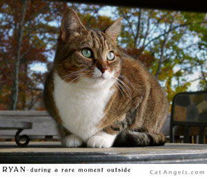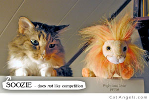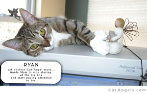 All of these sweet critters are featured in the Cat Angels book! They are our best buddies and they keep us quite busy. However, our good old Soozie sure don't look like she used to. We often say that we have 3.5 cats. And that's because Soozie, at 20 years old, has at least 2 feet firmly placed in the other world. And she's been that way for the last several years. Soozie is our teeny-skinny-alien-rasta-furred-ever-ready bunny. Her happy tenacity amazes us each day. Maybe someday I'll post a picture of Soozie in her present state, but I think she'd rather prefer if I wouldn't :)